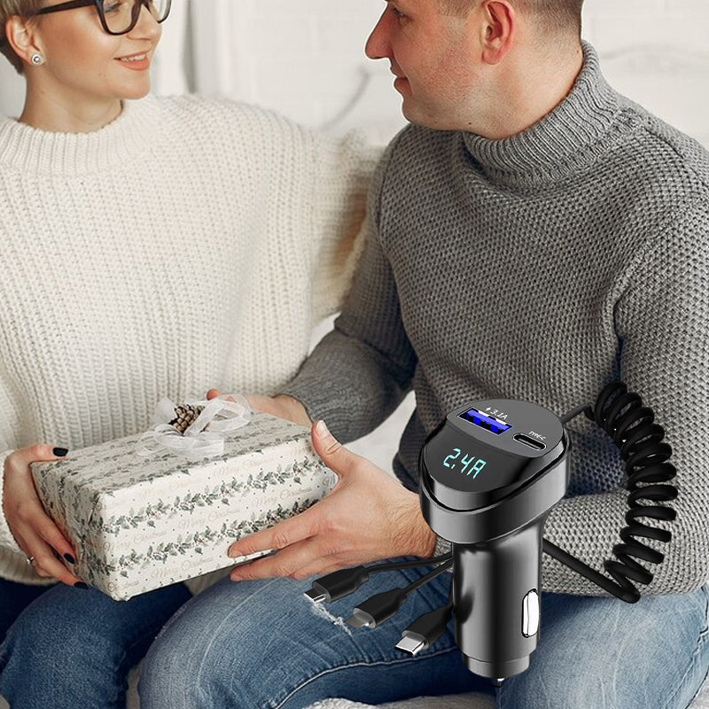 CHARGEMENT DE PLUSIEURS APPAREILS : Avec les câbles de charge 3-en-1, un port USB et un port Type-C, vous pouvez charger cinq appareils simultanément, ce qui est pratique pour le conducteur et les passagers.