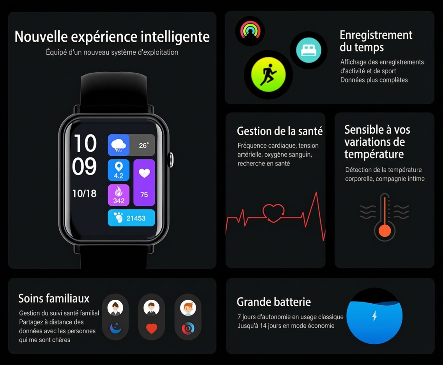 Montre intelligente multifonctionnelle ronde pour le sport et la santé【50% De Réduction】