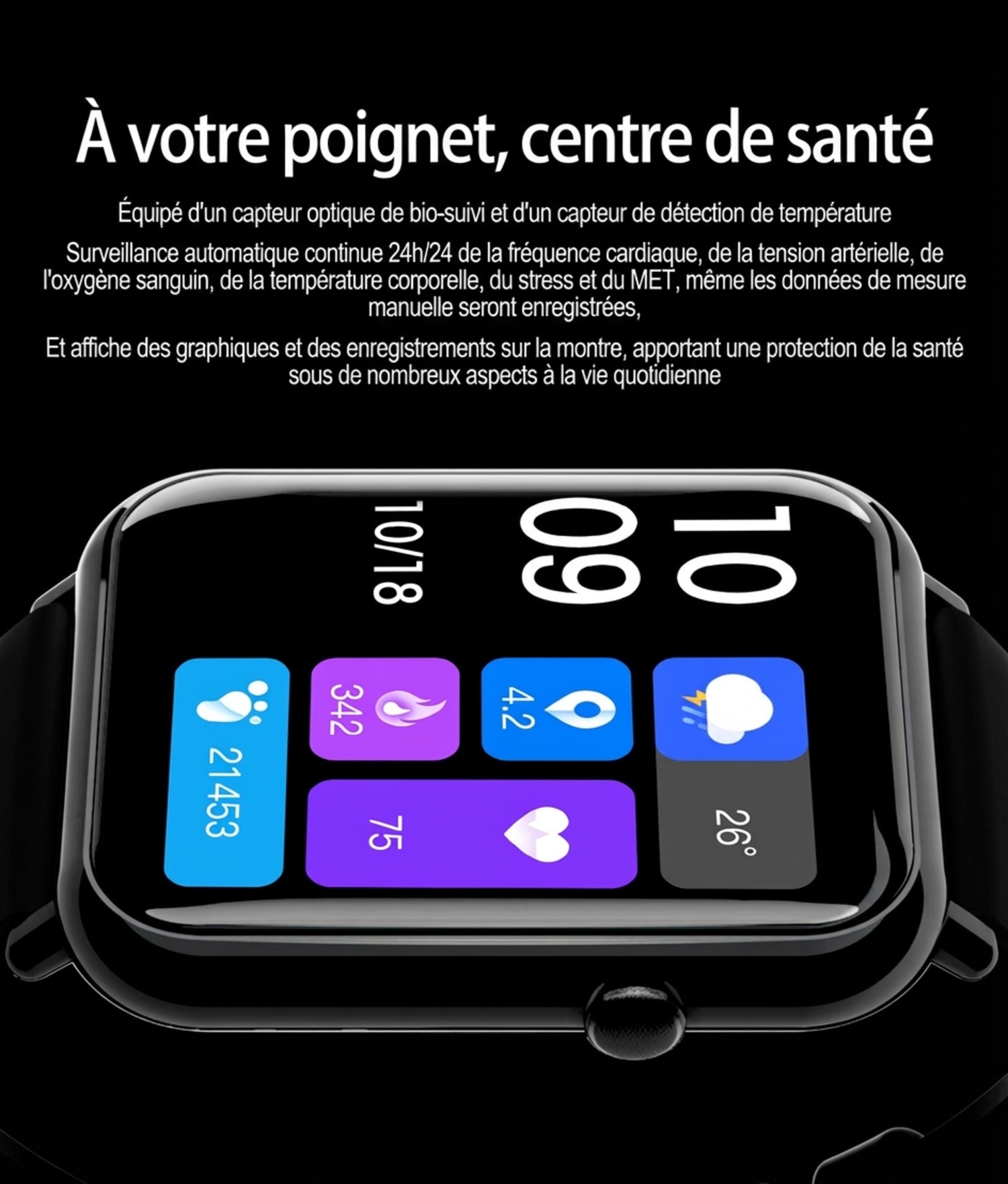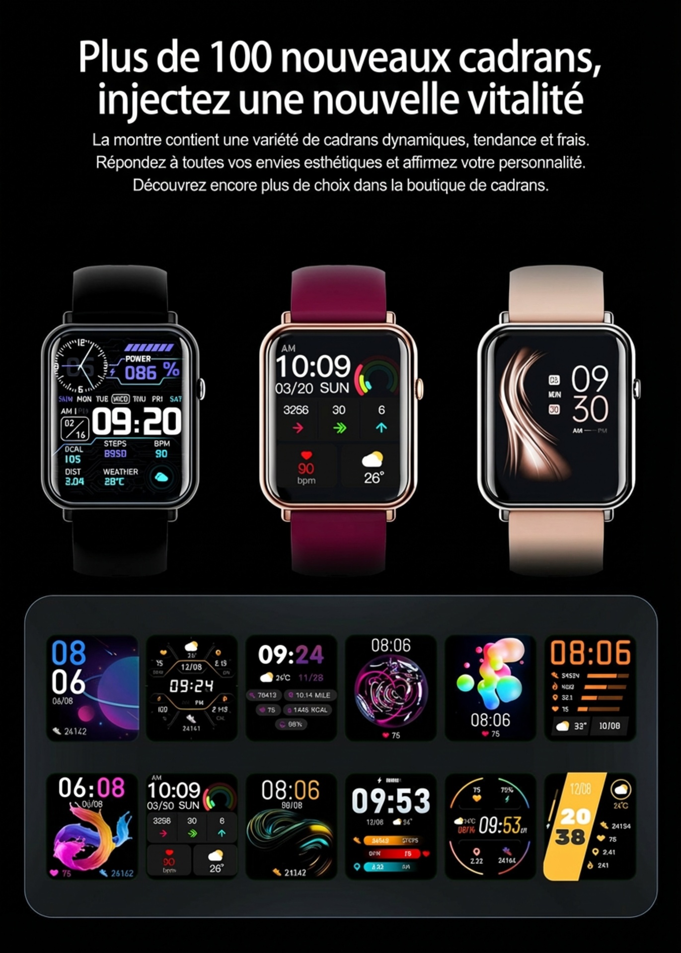 ✈️Livraison gratuite✈️Montre connectée pour femmes et hommes, tracker d'activité physique avec fonction d'appel, montre de fitness avec suivi du sommeil/100 sports/podomètre étanche IP68