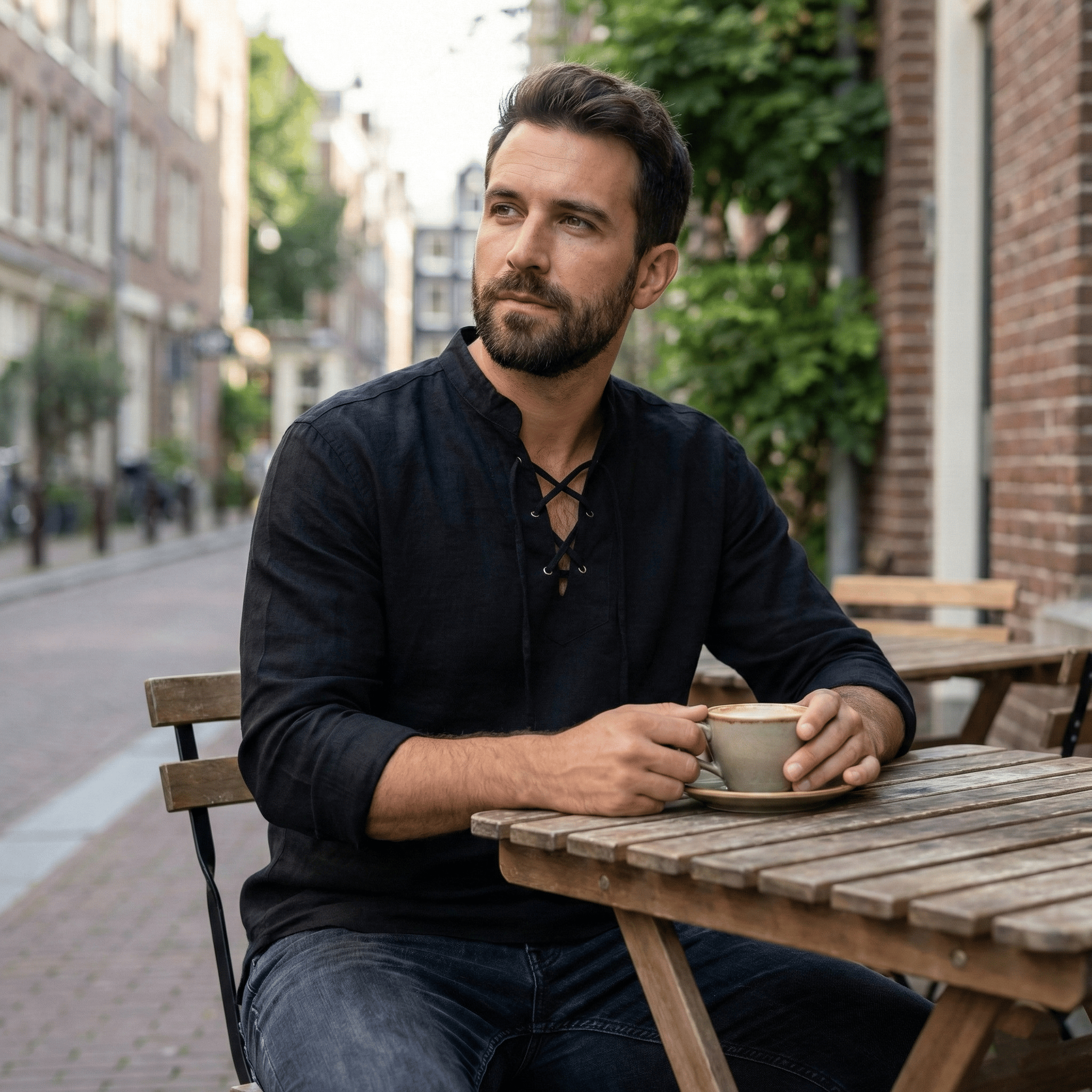 Prêt pour une soirée : Portez la chemise Noir Intense avec un pantalon chino ajusté, des mocassins en cuir et une montre minimaliste pour une allure soignée et accueillante.