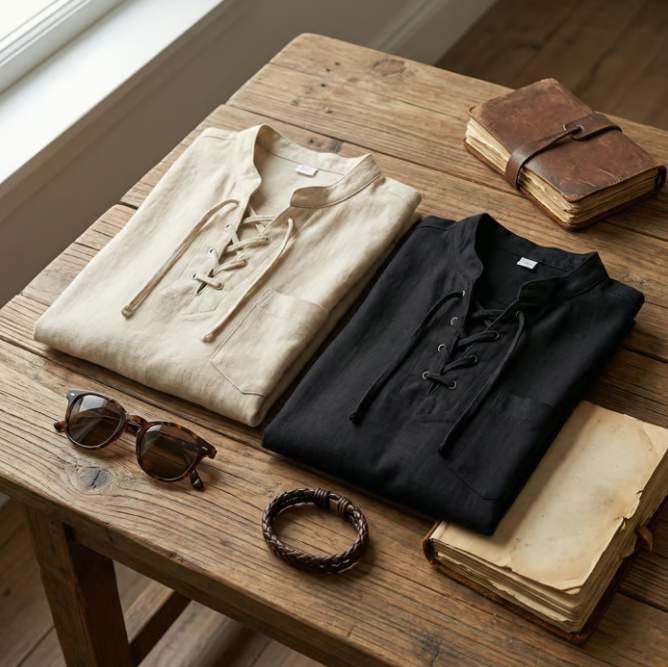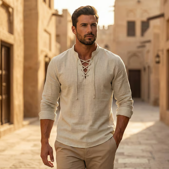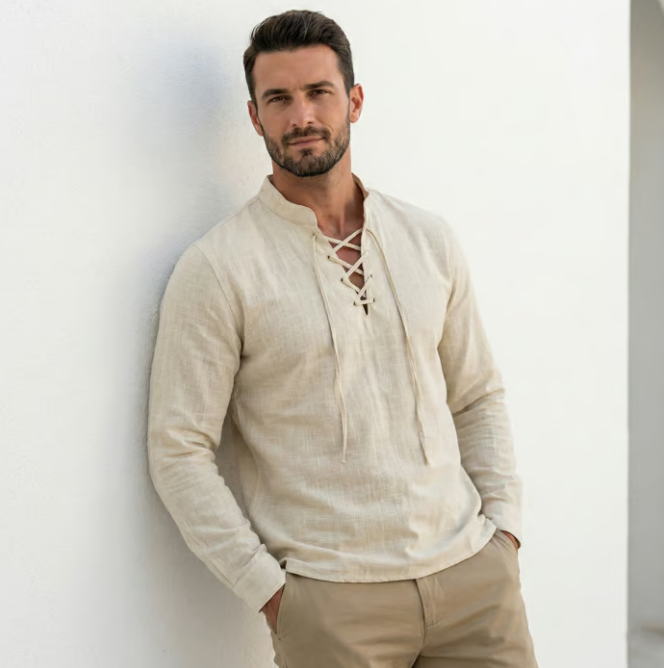 🔥 Nouveauté 2026 | T-shirt vintage pour homme en lin, col en V, style pirate médiéval, viking gothique, manches longues