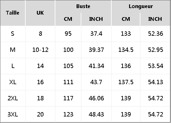 - Veuillez choisir votre taille strictement selon le tableau des tailles. Ne choisissez pas directement en fonction de vos propres habitudes.