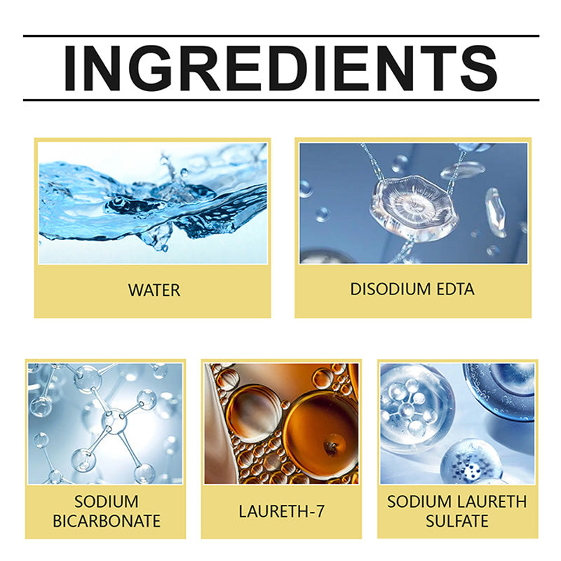 Ingrédients : eau, EDTA disodique, bicarbonate de sodium, etc.