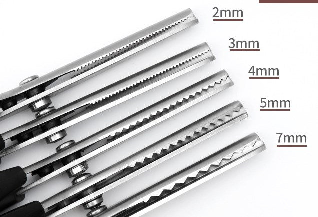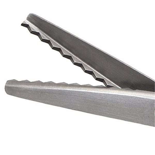 CISEAUX CRANTEURS POLYVALENTS – Les lames tranchantes sont dentelées, laissant un motif en zigzag à la découpe. Ce motif dentelé permet de limiter la longueur des fils effilochés sur les bords de tissu non finis, minimisant ainsi les dommages.