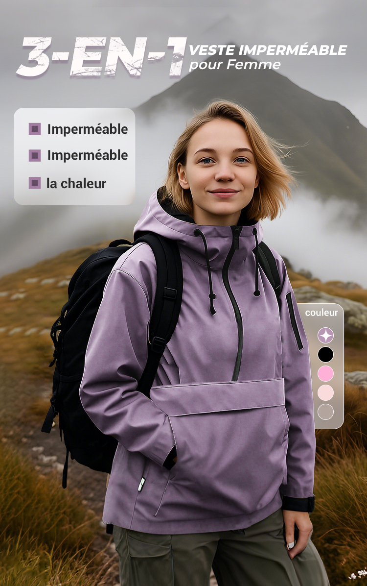 💜56 % DE RÉDUCTION💦Veste imperméable 3 en 1 pour femme - Pluie, vent et froid, tout est couvert【Livraison gratuite】