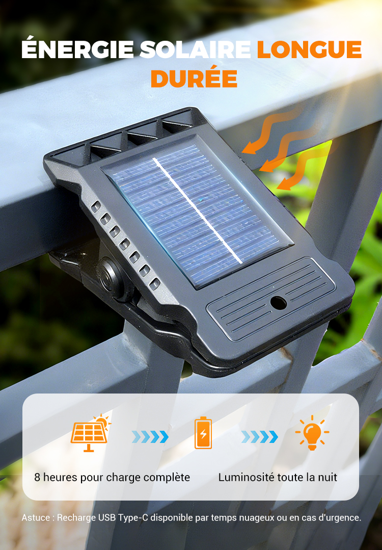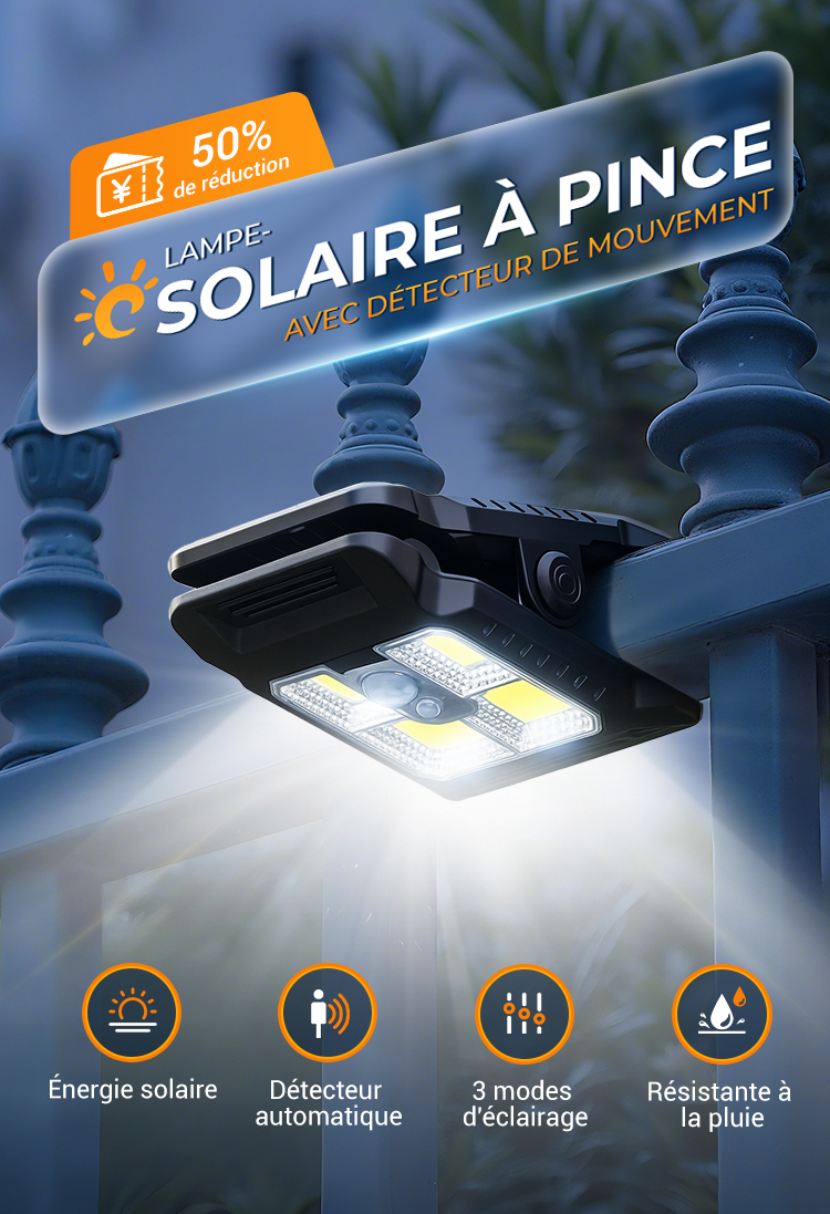 🌿 Lampe solaire à pince avec détecteur de mouvement – 2 achetées, 1 offerte ! Idéale pour votre jardin, votre balcon et votre terrasse ! 🏡✨