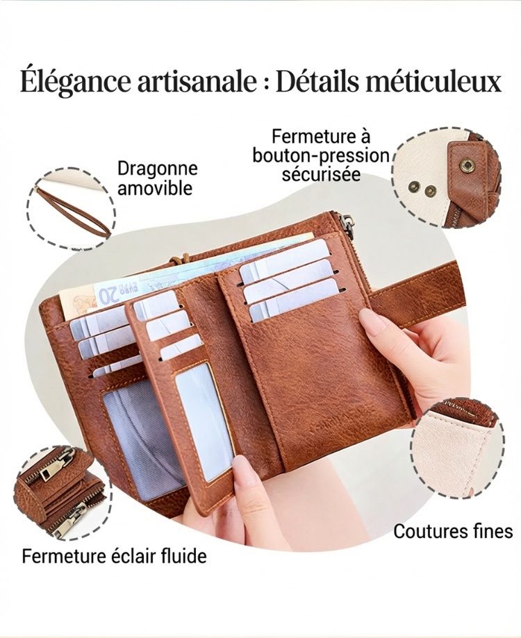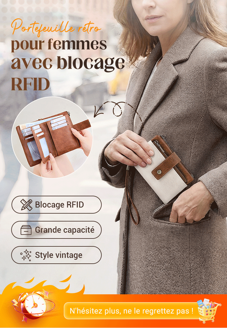 🔥Offre à durée limitée - Portefeuille rétro pour femme avec protection RFID à trois volets