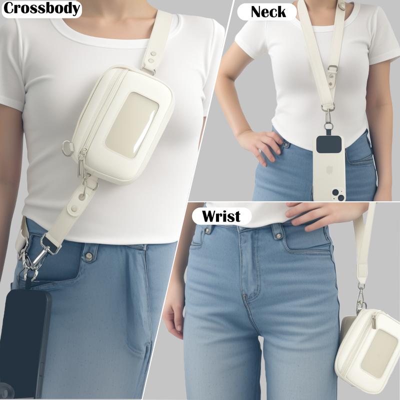 📱 Lanière de téléphone réglable avec bandoulière et portefeuille – Clip & Go Pratique pour une liberté quotidienne
